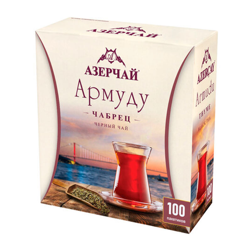 1Чай Азерчай Армуду 100пак черный с чабрецом /12