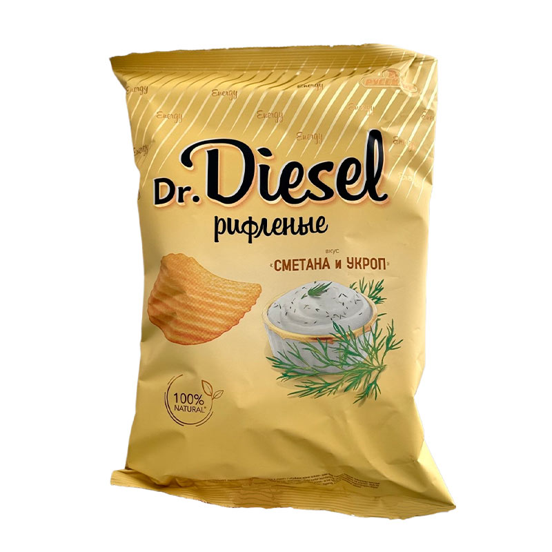 Чипсы "Dr.Diesel" со вкусом "Сметана и укроп" рифленые пакет 120гр /20 Русскарт