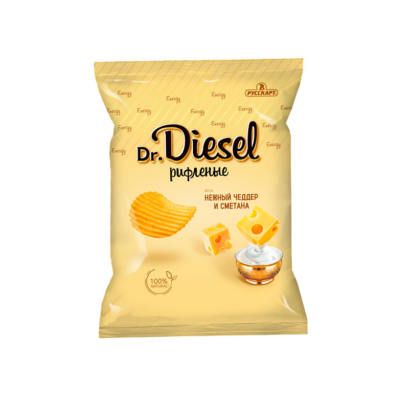 Чипсы "Dr.Diesel" рифленые со вкусом "Нежный чеддер и сметана" пакет 120гр /20 Русскарт