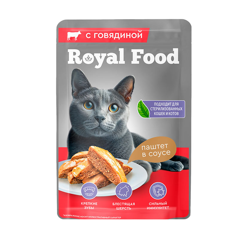 Корм для кошек паштет с Говядиной ТМ «Royal Food» 0,075кг /28