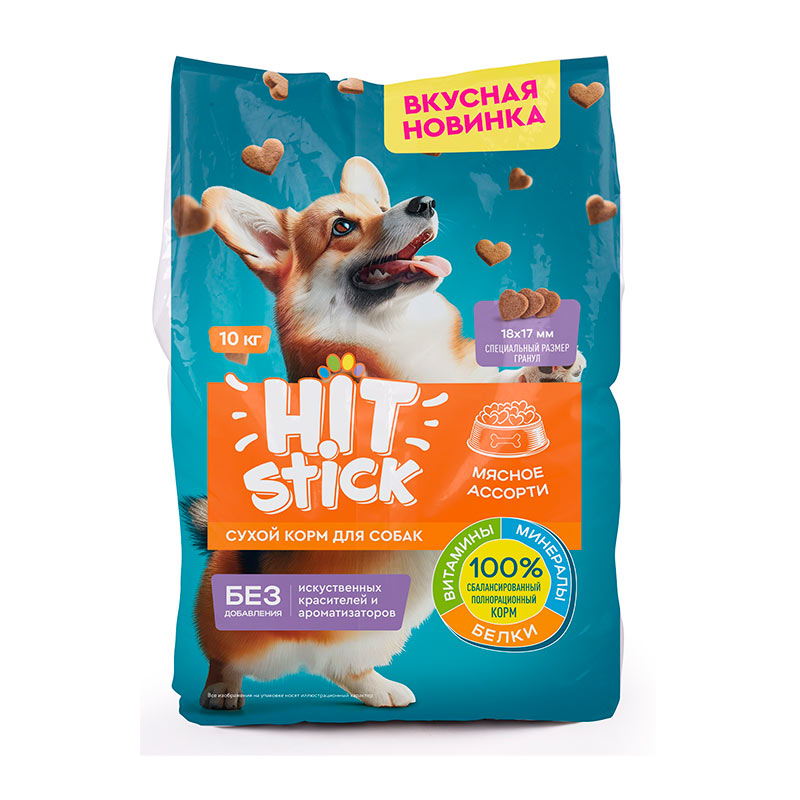 Сухой корм для собак для всех пород Мясное ассорти ТМ "Hitstick" (пакет) 10кг
