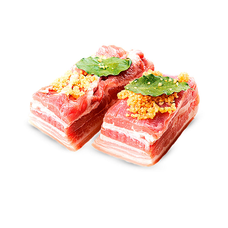 Грудинка - это деликатес из нежной свинины с оригинальным оттенком пряных специй и ароматом натурального копчения. Структура среза неоднородная, с чередованием прослоек шпика и мяса. Удобный порционный формат в виде прямоугольного бруска легко нарезать.