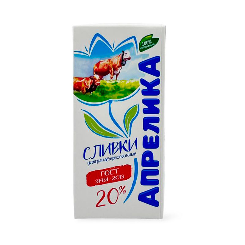 Сливки ультрапастериз. м.д.ж.20% ГОСТ 1л /12 ТМ Апрелика
