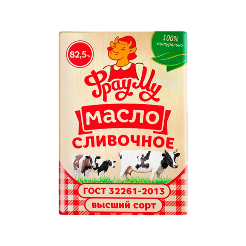 Масло сливочное традиционное 82,5% ГОСТ в/с Фрау Му 180г /12