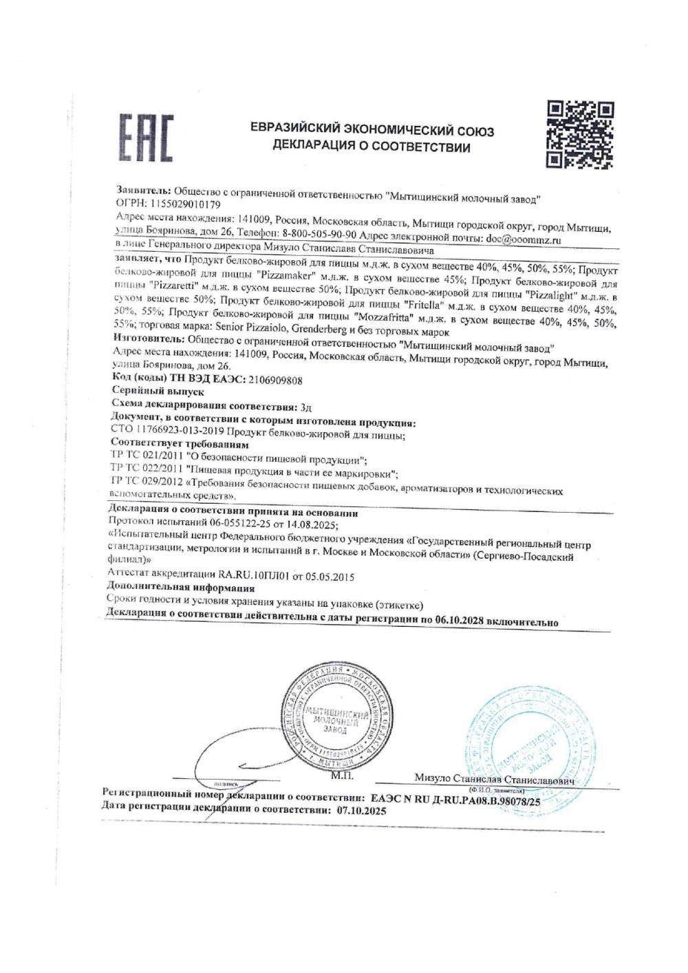 ПроизводительООО "МЫТИЩИНСКИЙ МОЛОЧНЫЙ ЗАВОД"