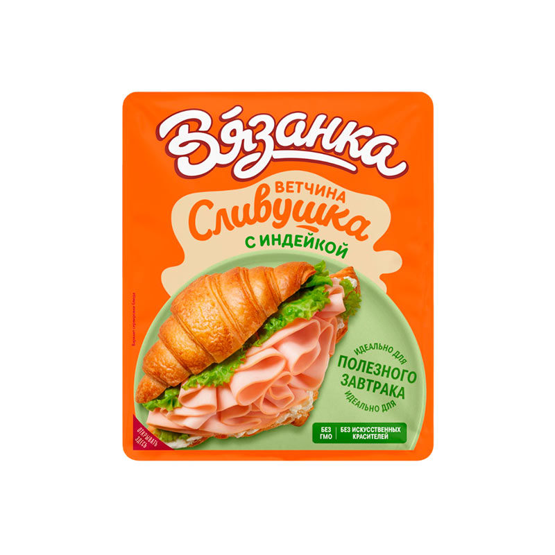 Ветчина Сливушка с индейкой нарезка 0,10кг /10 ТМ Вязанка (297)