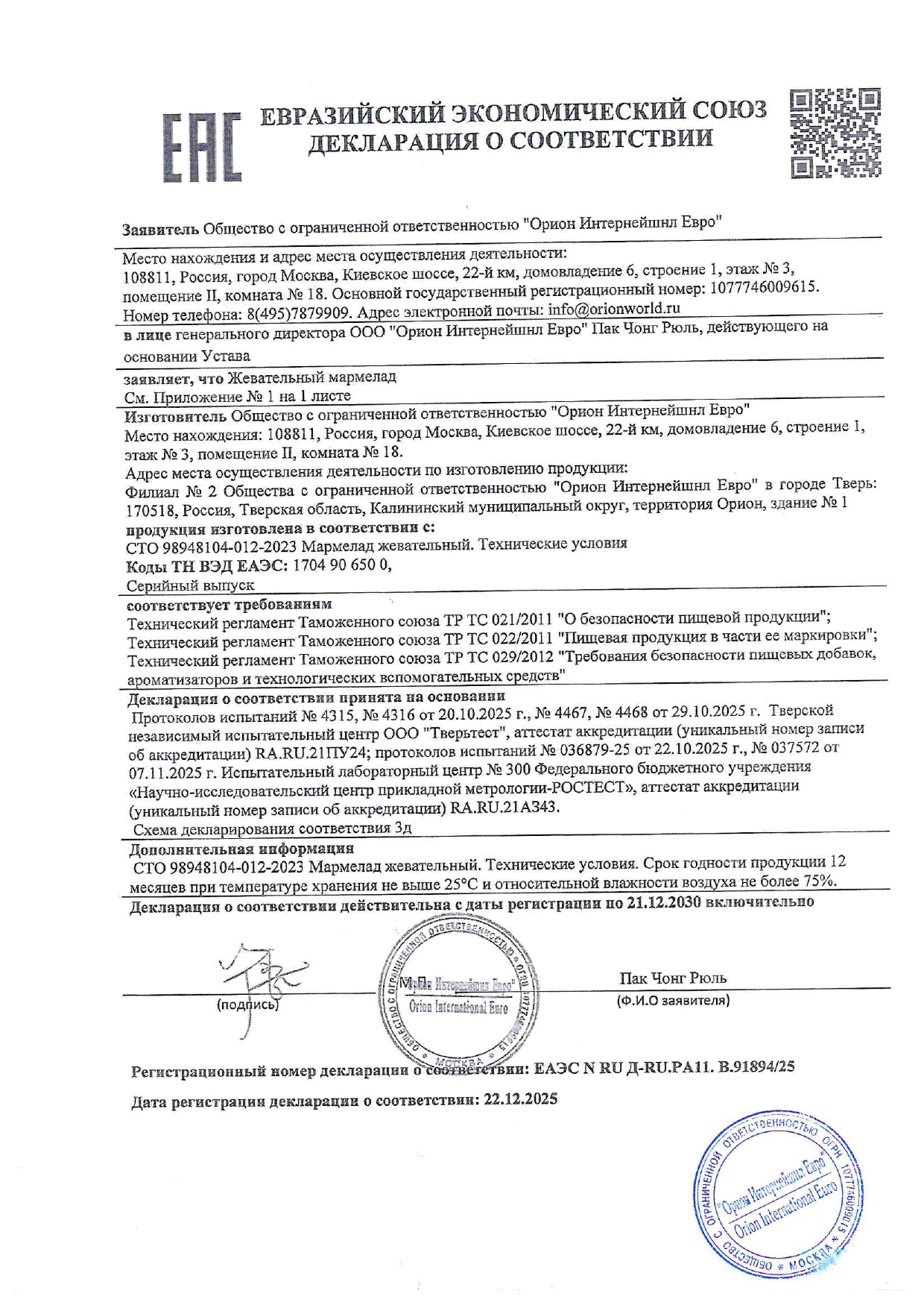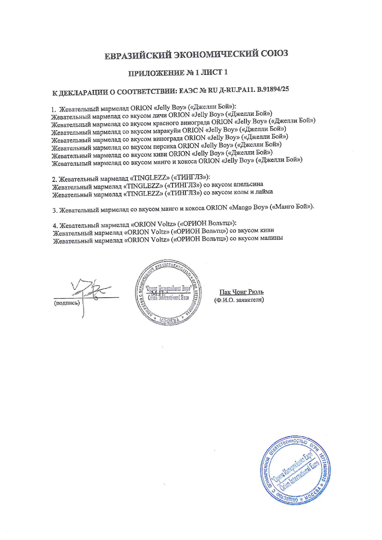 ПроизводительООО Орион Интернейшнл Евро