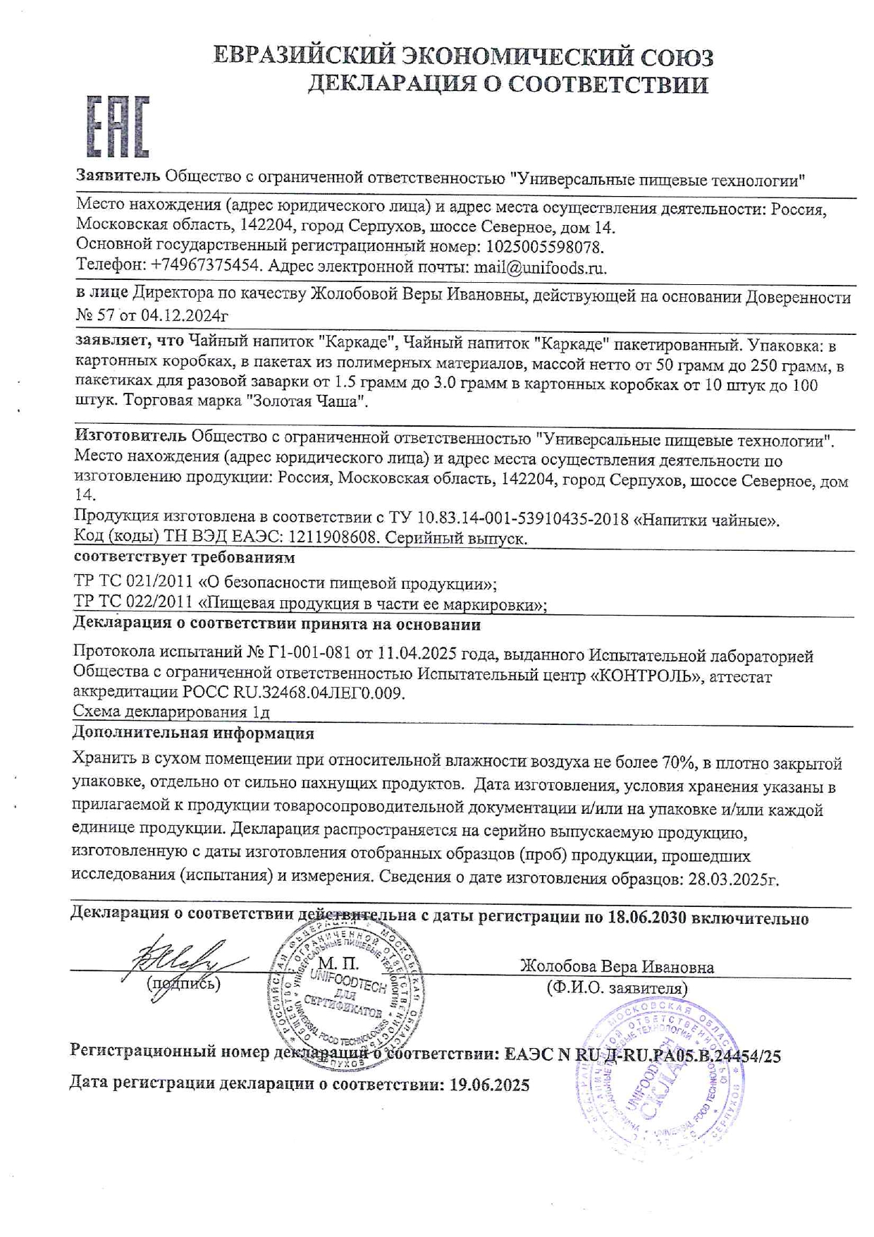 ПроизводительООО Универсальные Пищевые технологии