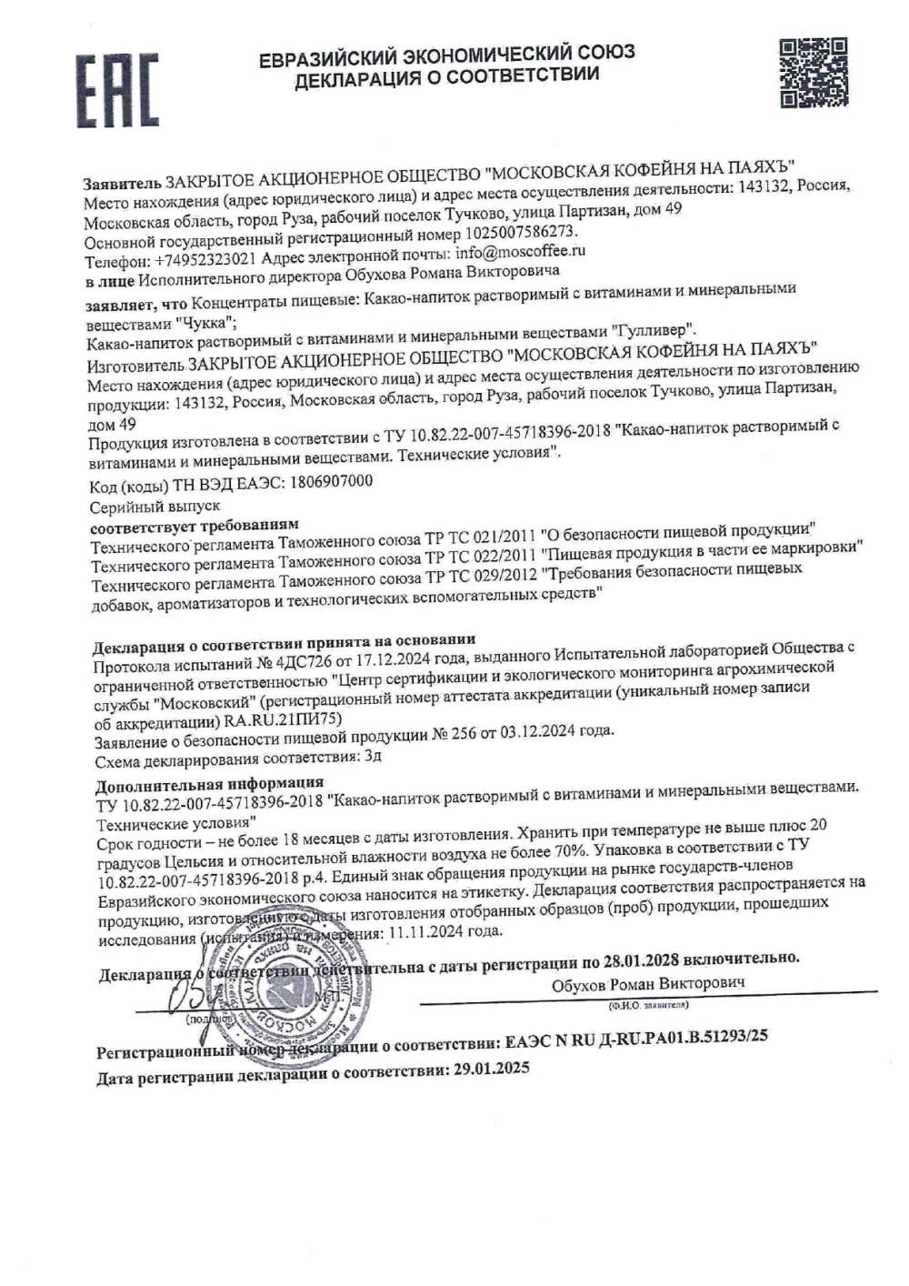 Какао-напиток «ЧУККА» гранулированный, 125 г — это насыщенный, ароматный напиток с натуральным вкусом какао, легко растворяющийся в горячей воде или молоке. Идеален для утреннего ритуала, перерыва или