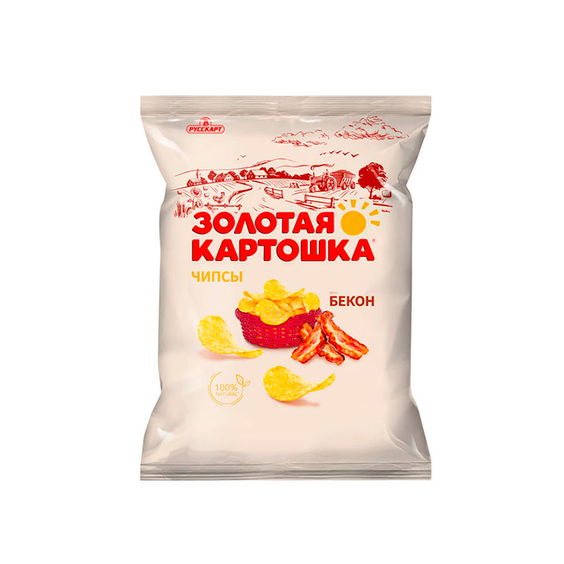 Чипсы "Золотая картошка" со вкусом "Бекон" пакет 220гр /14 Русскарт
