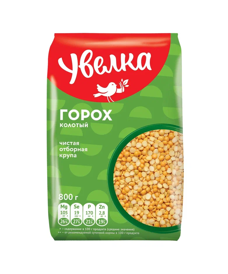 Крупа горох шлифованный колотый 800гр /6 Увелка 266