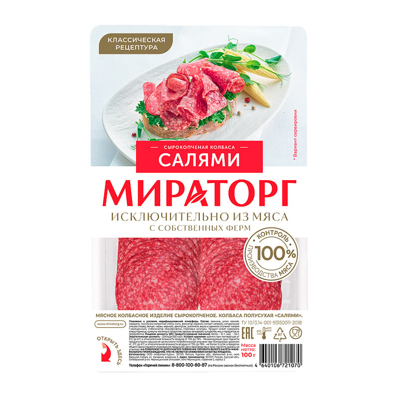 Колбаса с/к Салями нарезка 100г /10 Мираторг
