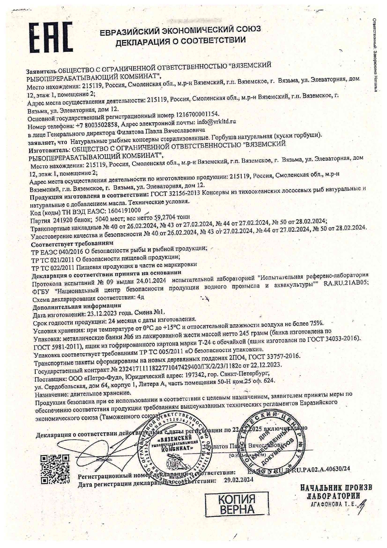 ПроизводительООО «Вяземский рыбоперерабатывающий комбинат»