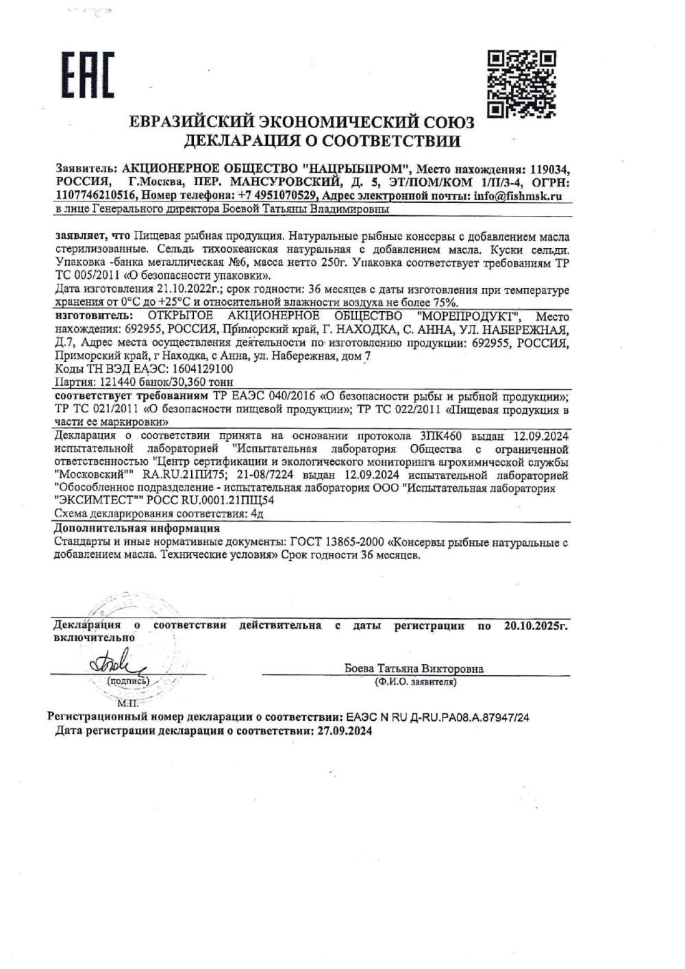 ПроизводительООО Морепродукт