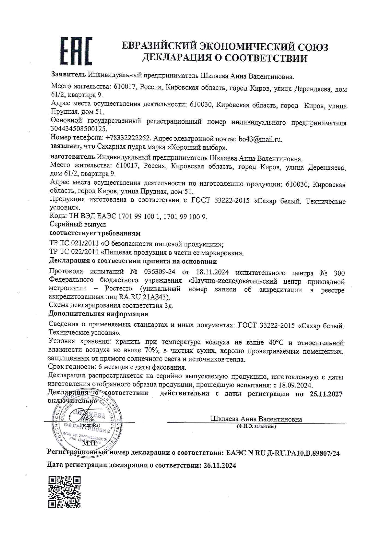 ПроизводительИП Шкляева А.В