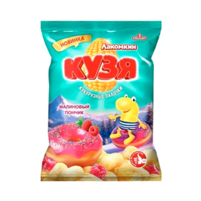 Кукурузные палочки "Кузя Лакомкин" со вкусом Малиновый пончик пакет 100гр /15 Русскарт
