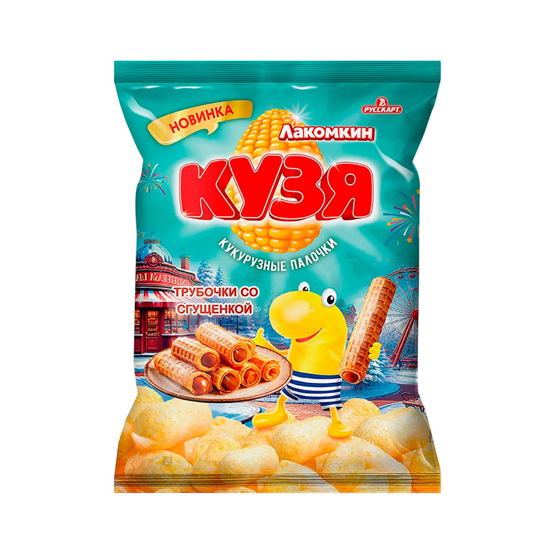 Кукурузные палочки "Кузя Лакомкин" со вкусом Трубочки со сгущенкой пакет 100гр /15 Русскарт