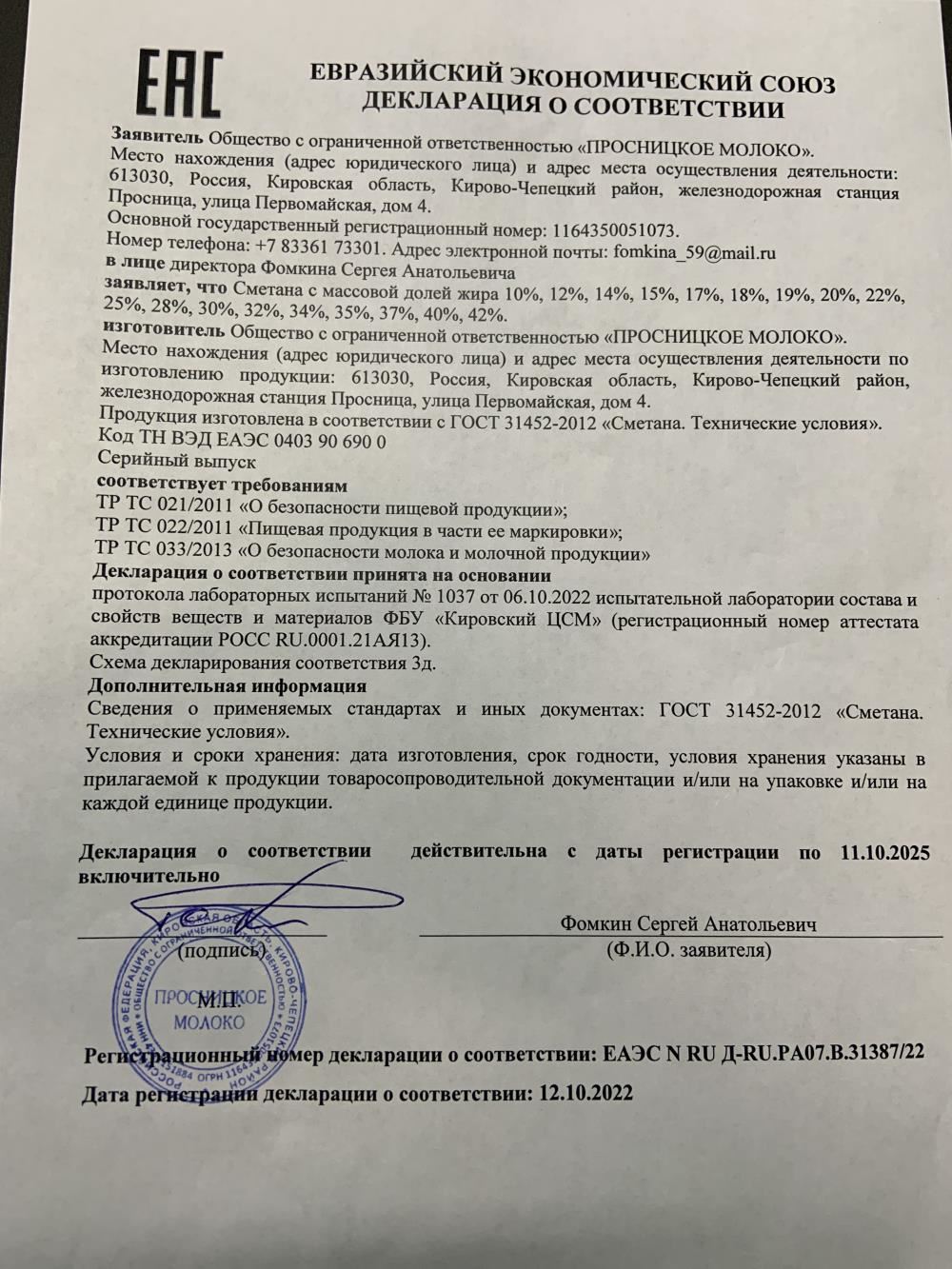 ПроизводительООО Просницкое молоко