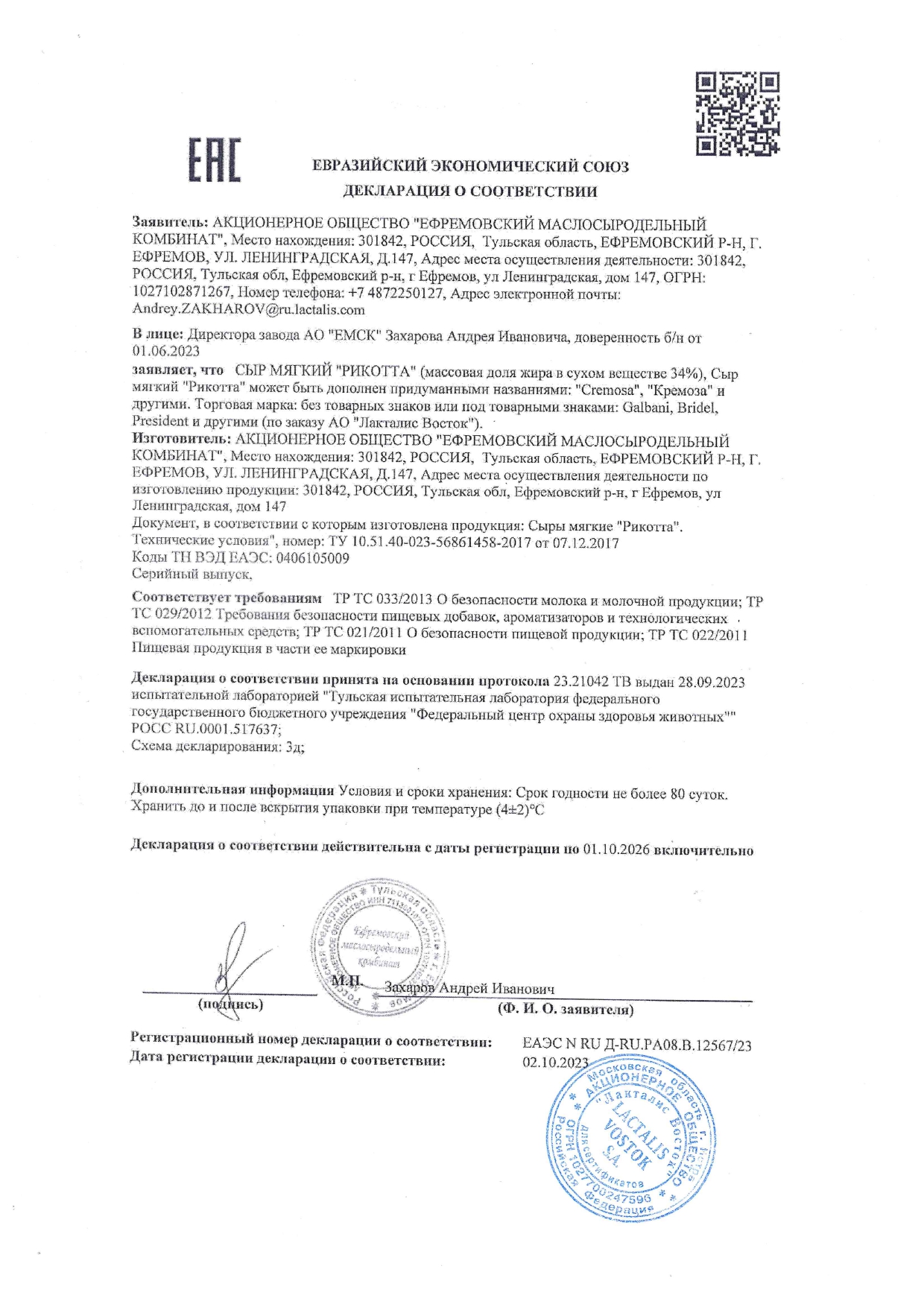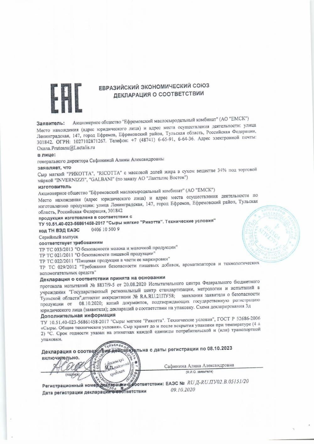 ПроизводительАО "Лакталис Восток"