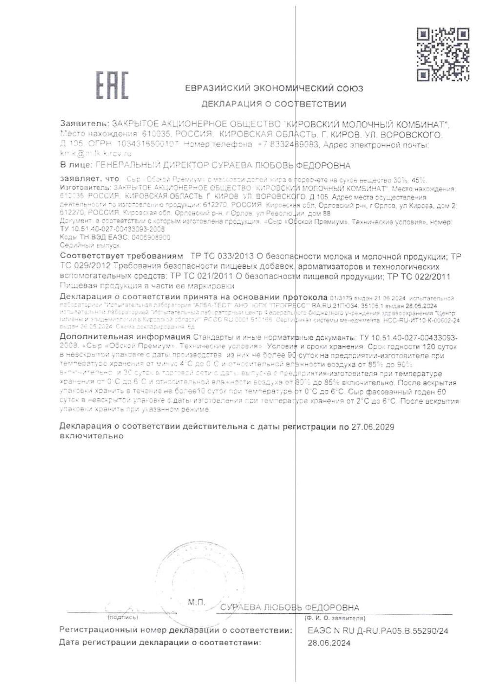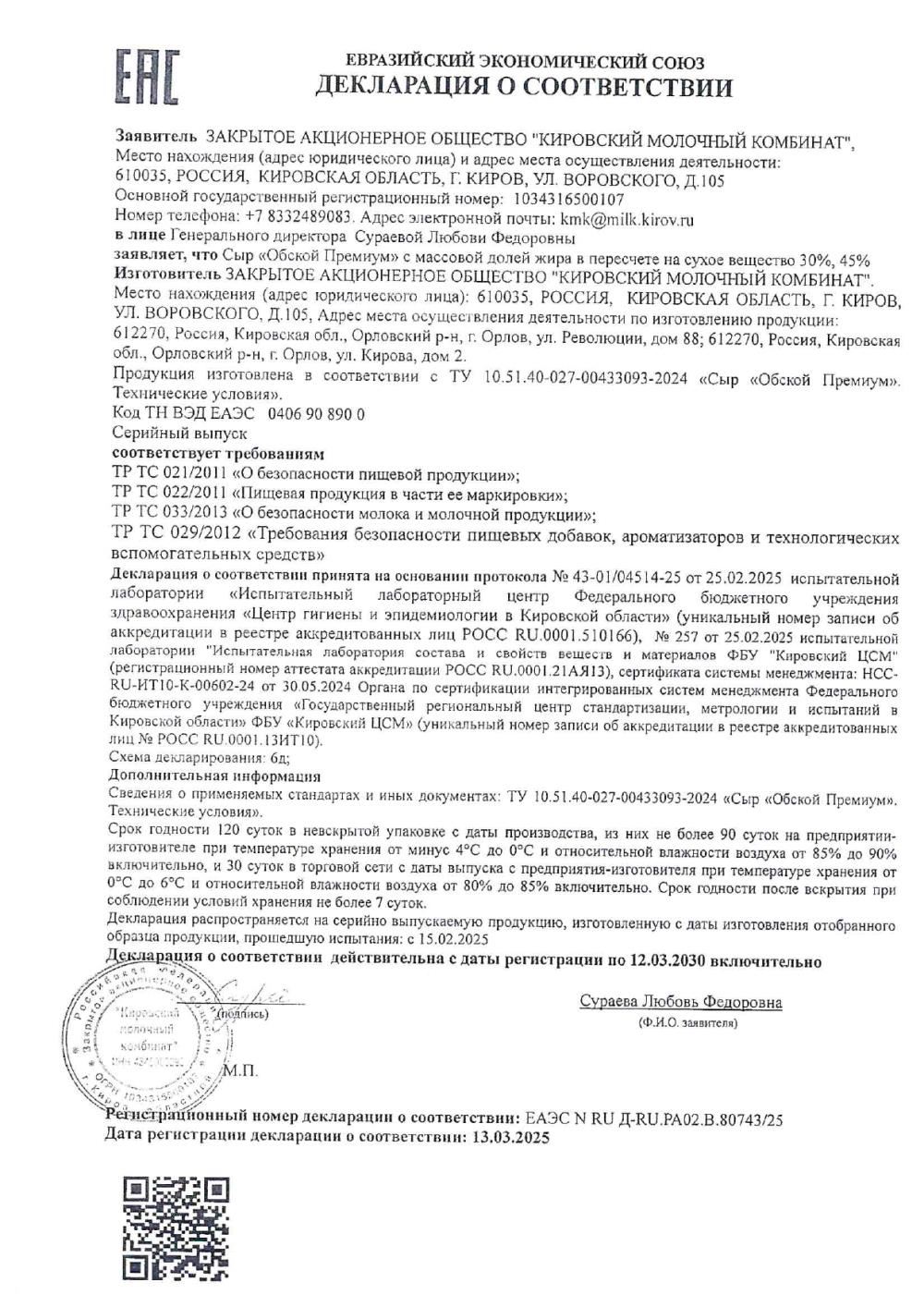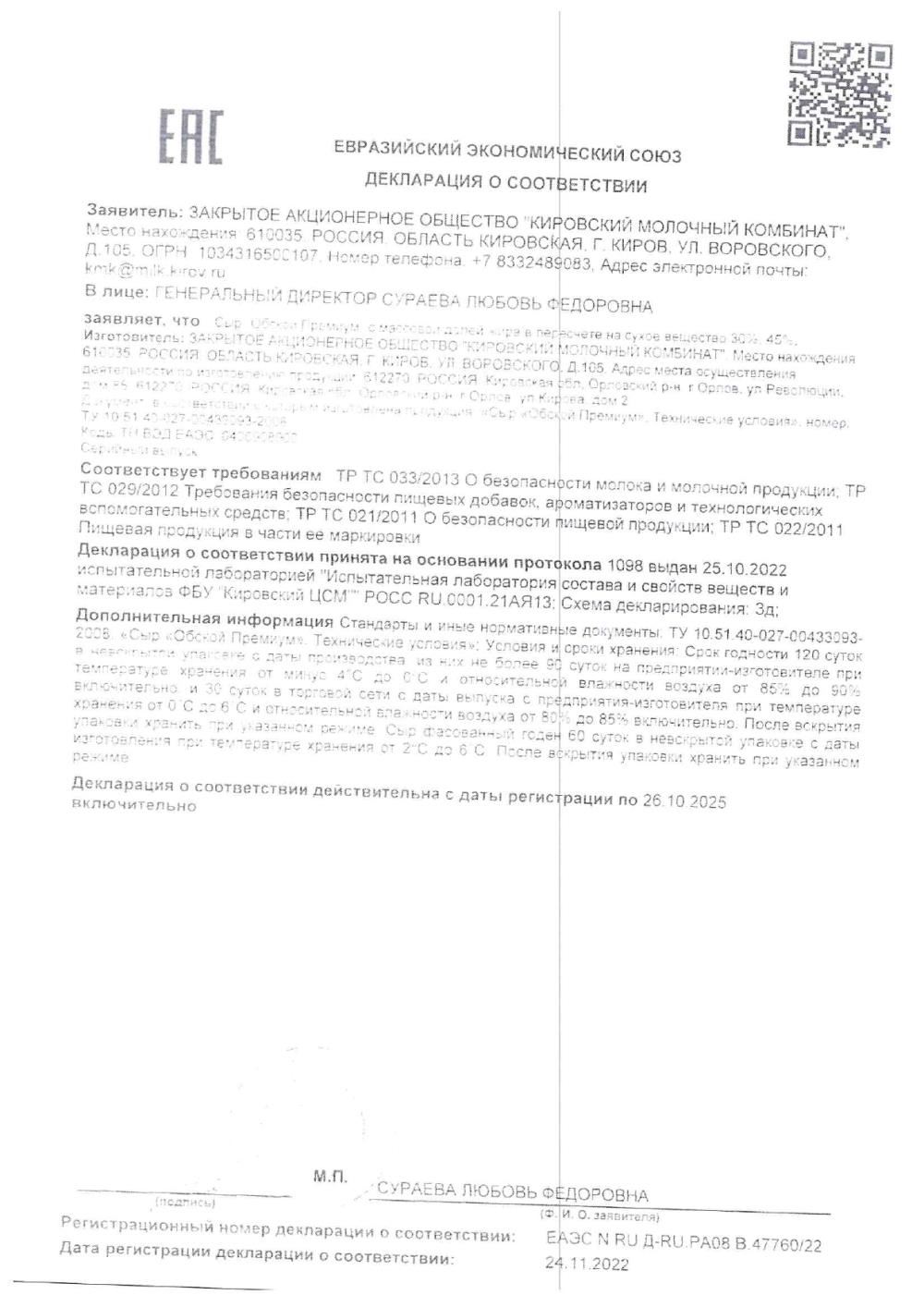 ПроизводительЗАО "Кировский молочный комбинат"