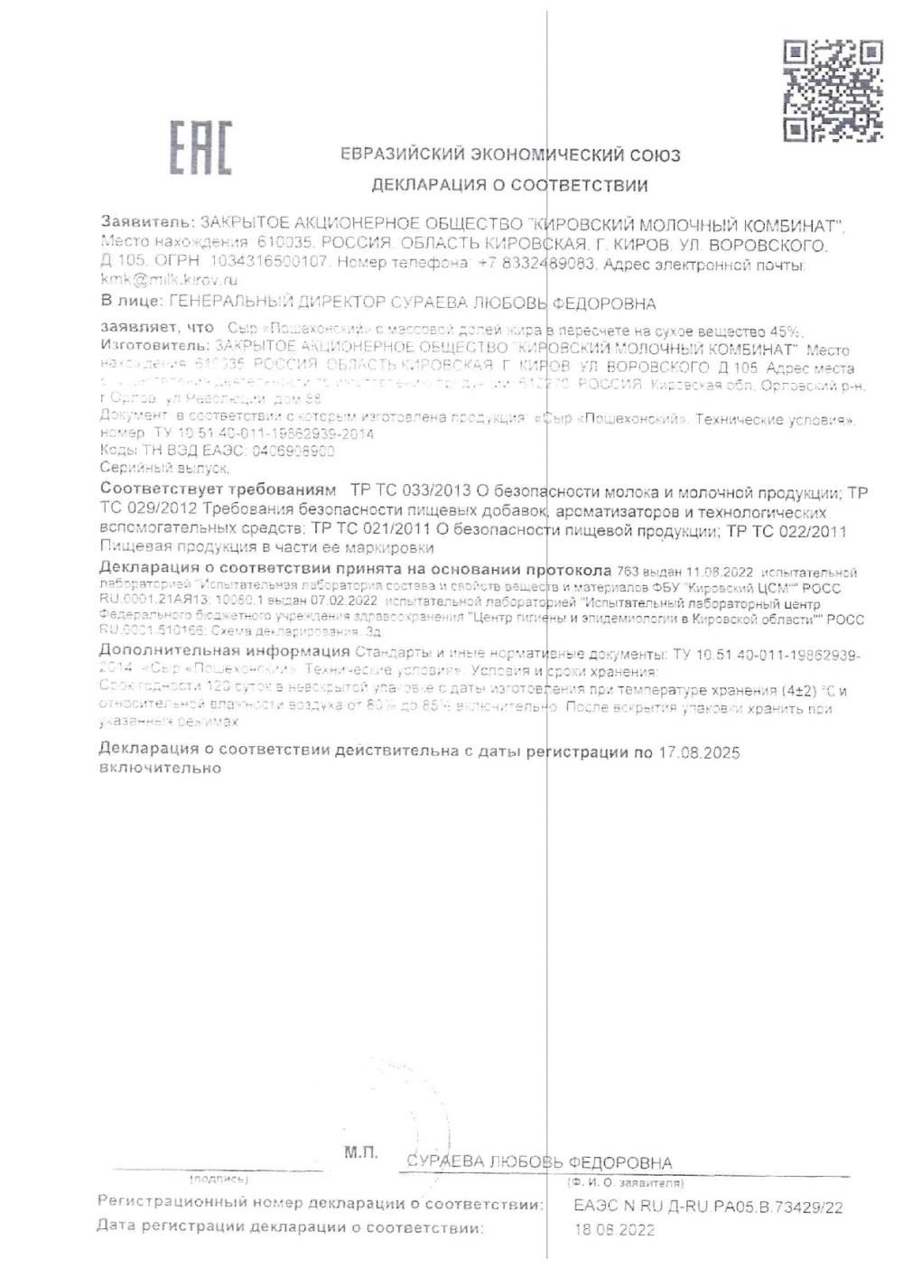Сыр полутвердый Пошехонский 45% изготавливается традиционным способом из натурального отборного коровьего молока со своих ферм.