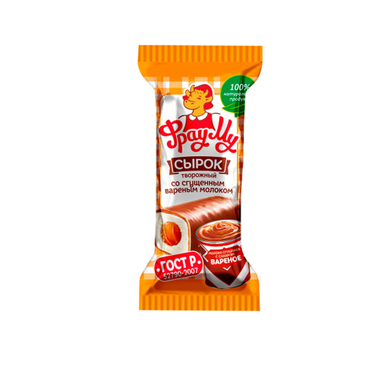 Сырок творожный глазированный со сгущенным вареным молоком"Фрау МУ" во флоу-пакете 40гр /20