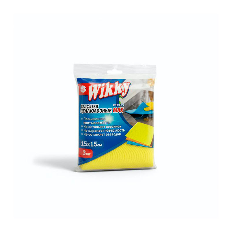 Салфетка целлюлозная 3шт (15*15см) Wikky /50