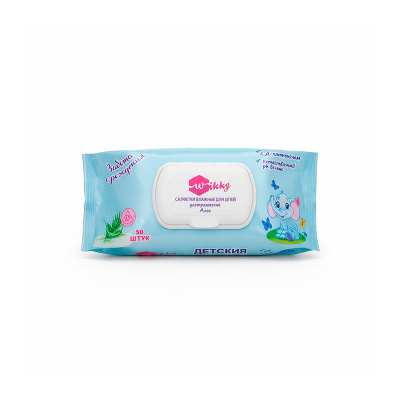 Салфетки влажные Wikky Детские с Алоэ (с клапаном) 50шт /24