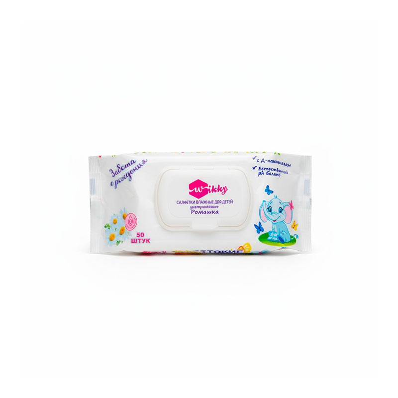 Салфетки влажные Wikky Детские с Ромашкой (с клапаном) 50шт /24