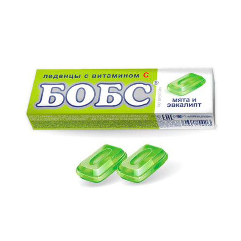 БОБС мята с эвкалиптом, леденцы с витамином С 3шт/ 15*6