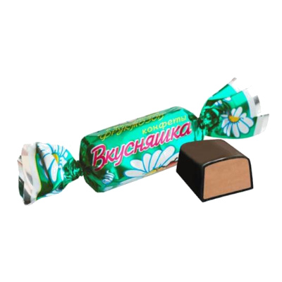 Конфеты "ВКУСНЯШКА" на фруктозе прекрасный диетический десерт для диабетического и лечебного питания. Состав: глазурь шоколадная (пудра сахарная, заменитель какао-масла, какао-порошок, эмульгатор лецитин, ароматизатор "Ванилин" идентичный натуральному), фруктоза, пудра сахарная, молоко сгущенное, масло сливочное, патока, какао-порошок, спирт пищевой, ароматизаторы: "Ромовый", "Ванильный", идентичные натуральным.