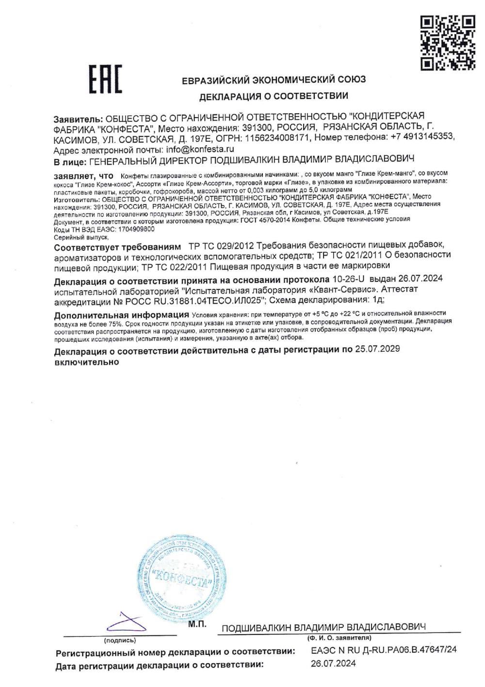 ПроизводительКФ Конфеста