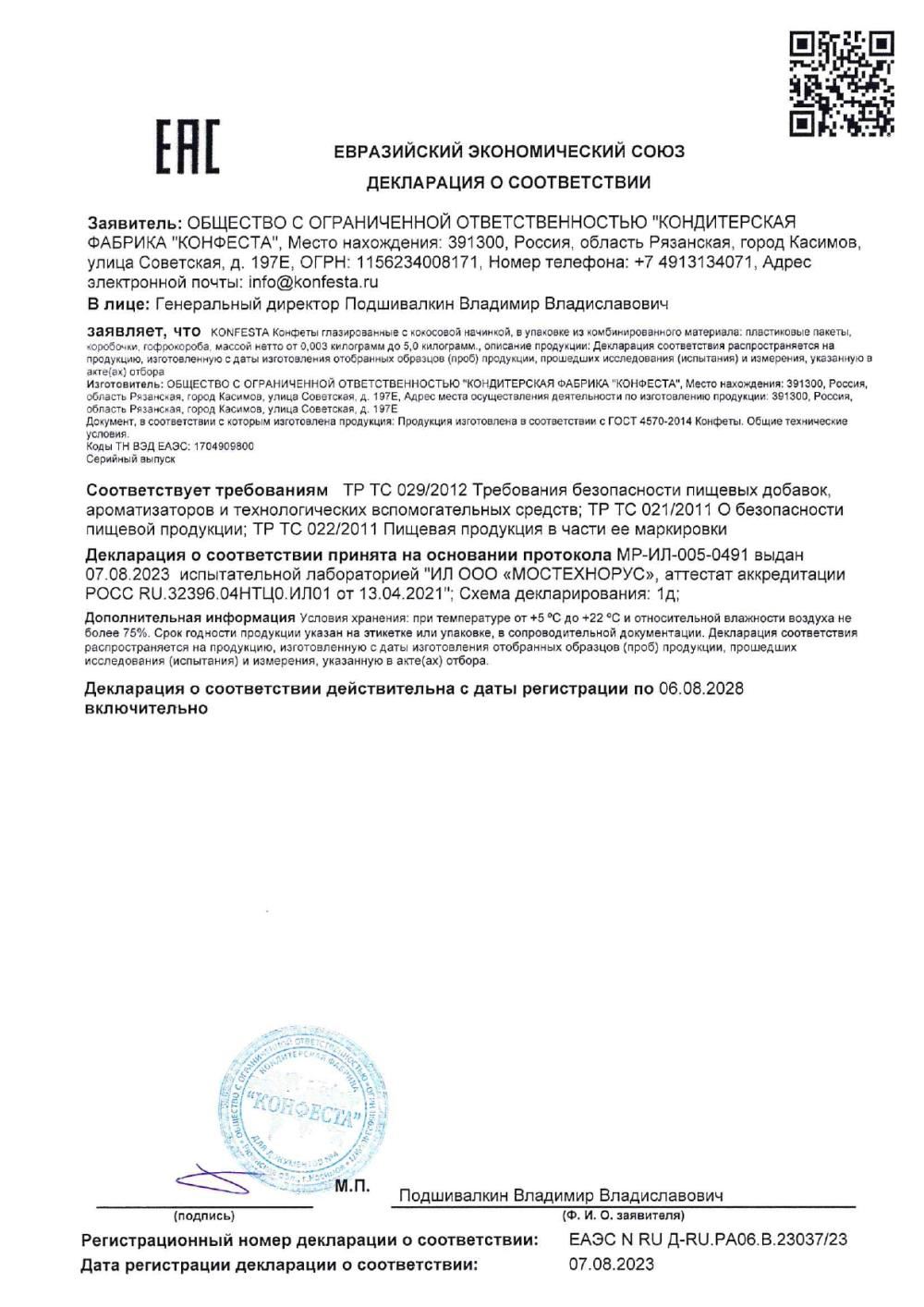 ПроизводительКФ Конфеста