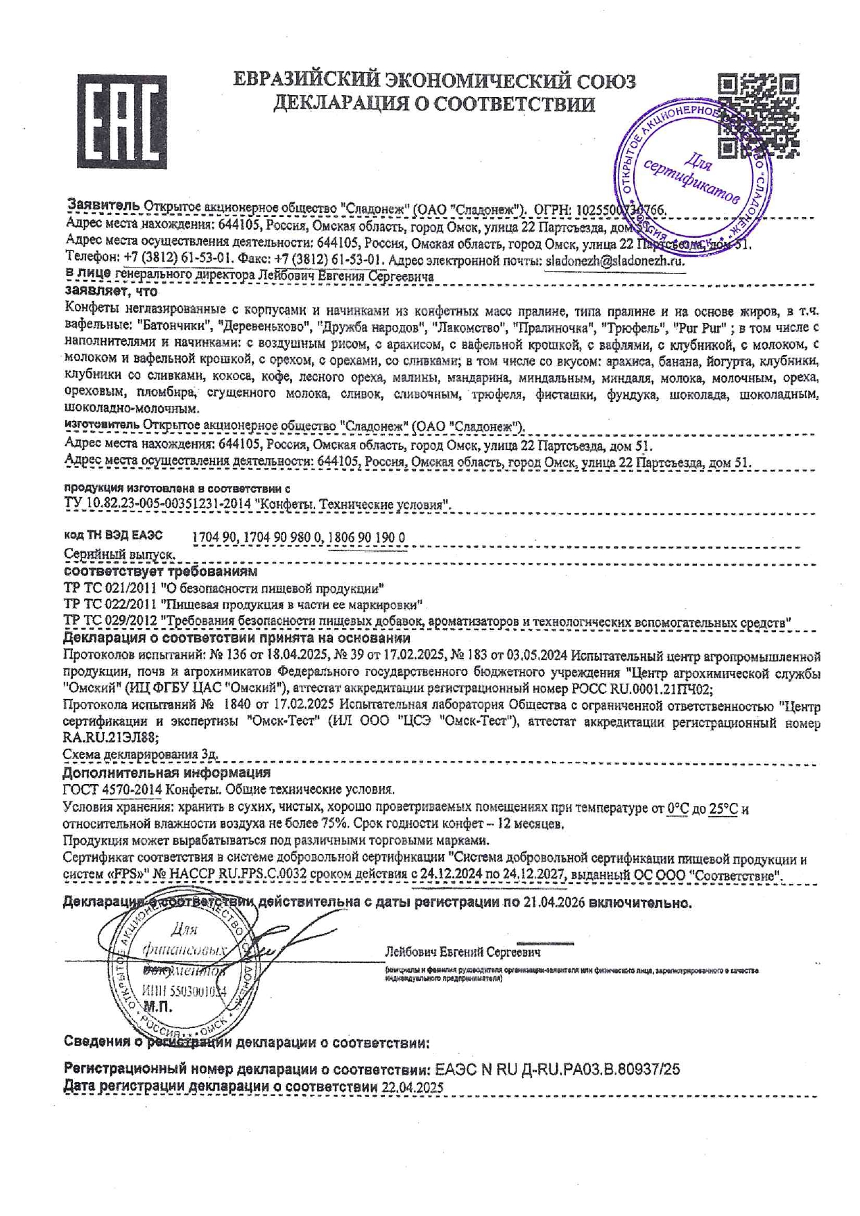 ПроизводительОАО Сладонеж