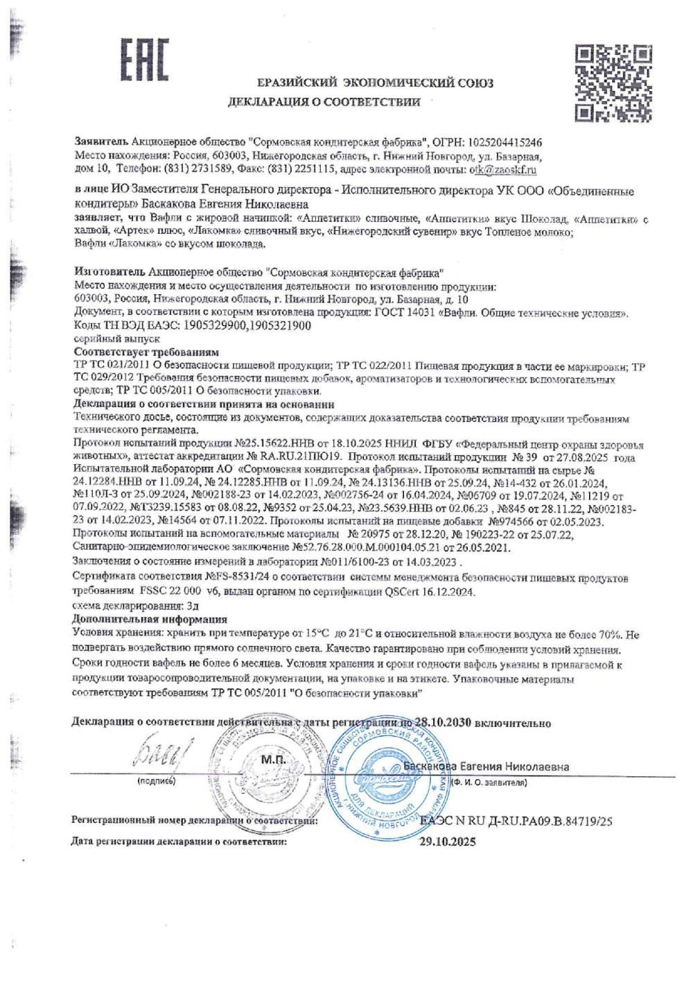 Вафли СОРМОВО Аппетитки сливочные – хрустящие вафли с нежным сливочным вкусом. Изготовлены без использования искусственных красителей и консервантов. Для производства используются только натуральные ингредиенты высшего качества.