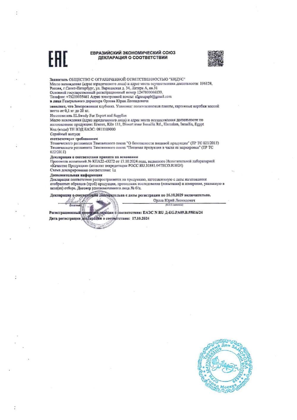 Клубника заморожена шоковым способом, благодаря чему сохранила не только природную текстуру и нежный вкус, но и максимум витаминов и полезных элементов. Такую ягоду можно добавлять в компоты и десерты, мороженое, использовать как начинку для домашней выпечки.